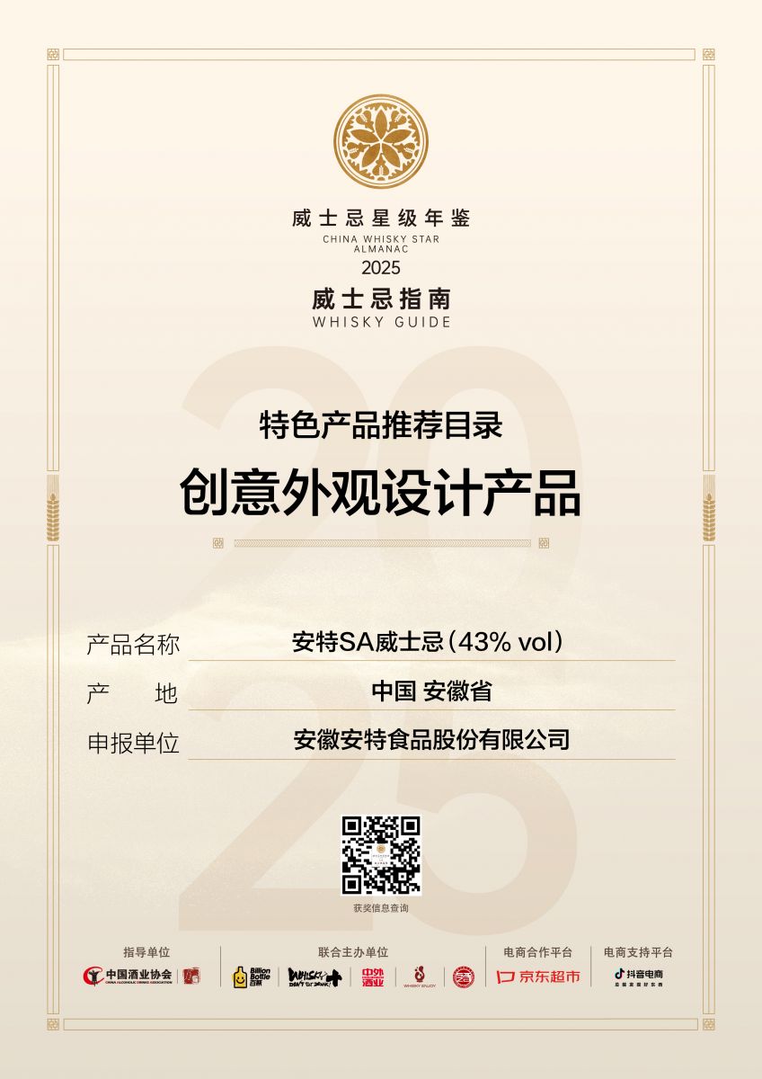 SA威士忌榮獲2025(首屆)CWSA威士忌星級年鑒“創(chuàng)意外觀設(shè)計(jì)產(chǎn)品”獎項(xiàng)