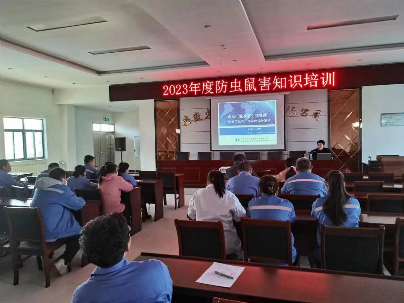 為提高公司品質(zhì)管理人員的蟲害防制能力,系統(tǒng)有效處理工廠蟲鼠害問題以降低蟲害造成的損失,滿足消費(fèi)者不斷提高的質(zhì)量要求,2月27日,公司邀請中國中檢安徽公司來司開展蟲鼠害防治培訓(xùn),公司總廠及各分廠車間、安環(huán)部、質(zhì)量中心等20余人參加培訓(xùn)。